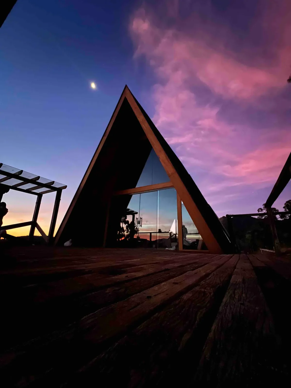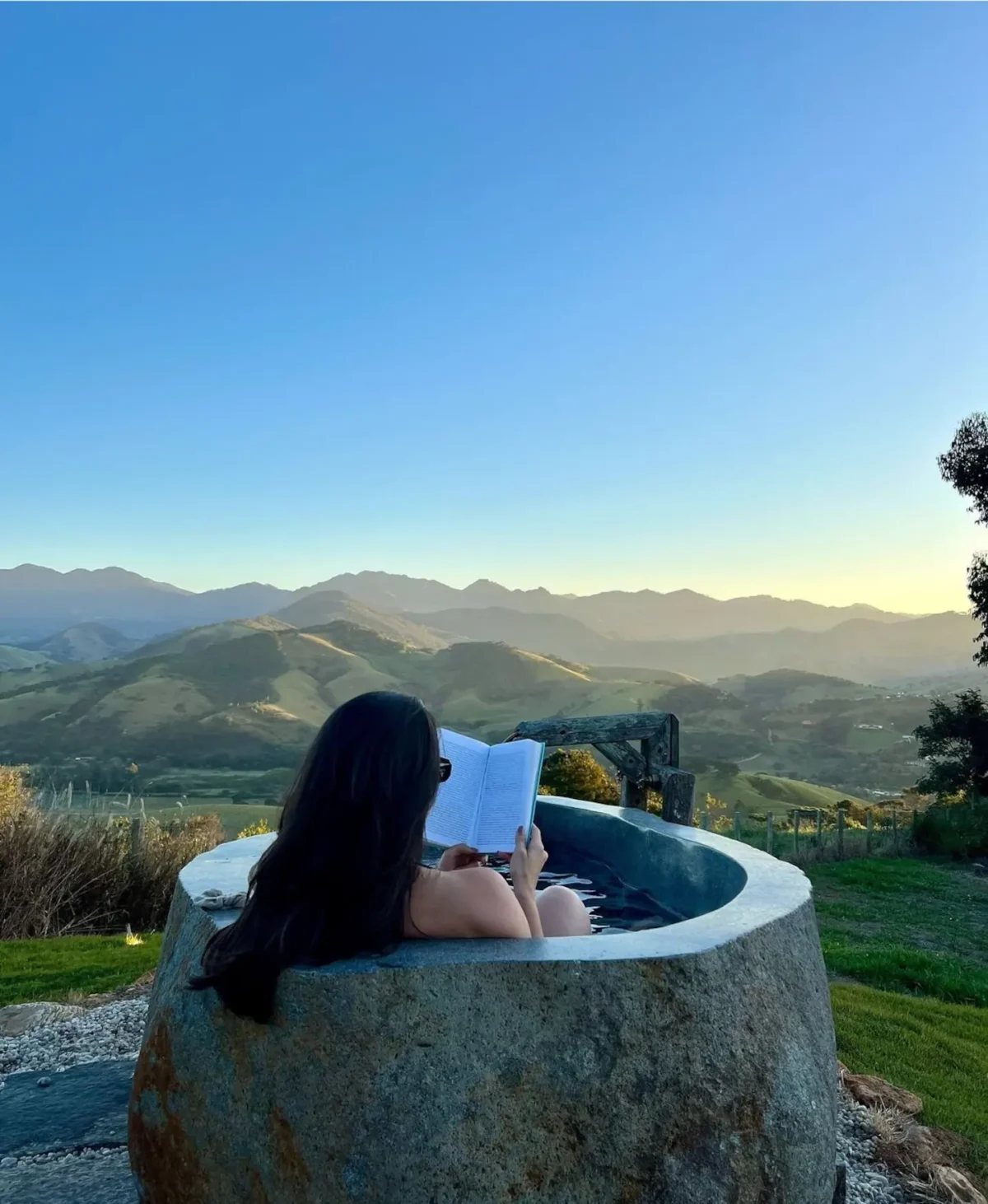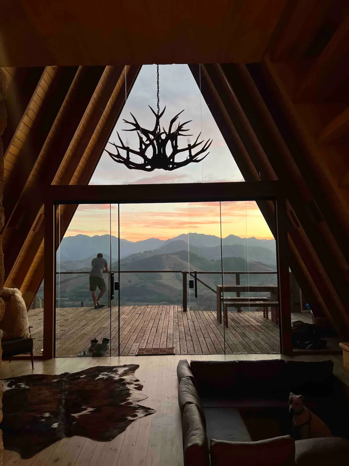 Vista praticamente 360º, é possível apreciar o nascer e pôr do sol, observar os tucanos e outros pássaros. Na área externa você pode contar com uma banheira que veio da Indonésia, feita em pedra de rio esculpida, o resultado é todo o charme dela junto com uma incrível vista para as montanhas.