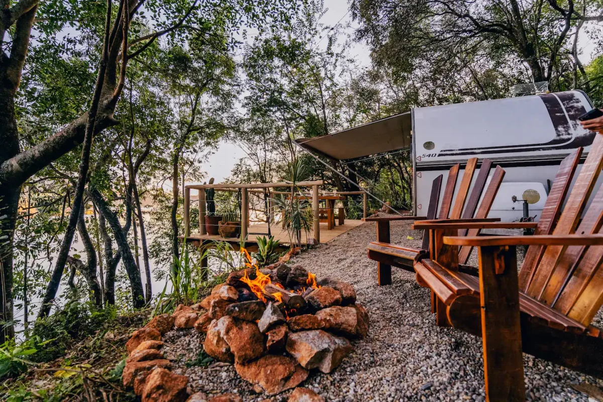 Estilo anos 70, o Camarim, fica encravado à margem da represa Jaguari e é cercado por mata nativa e trilhas de fácil percurso. Fica dentro de um condomínio, apenas uma hora e meia de distância de São Paulo.